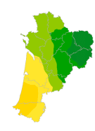 | Aquitaine | 10 [2 ; 18] | 365 [73 ; 657] |